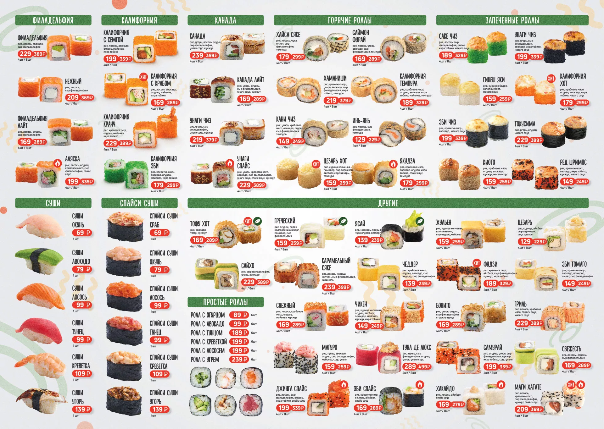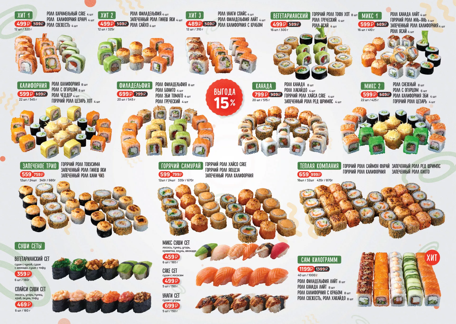 Оформление меню суши-бара «Roll Wok Club» в Мензелинске